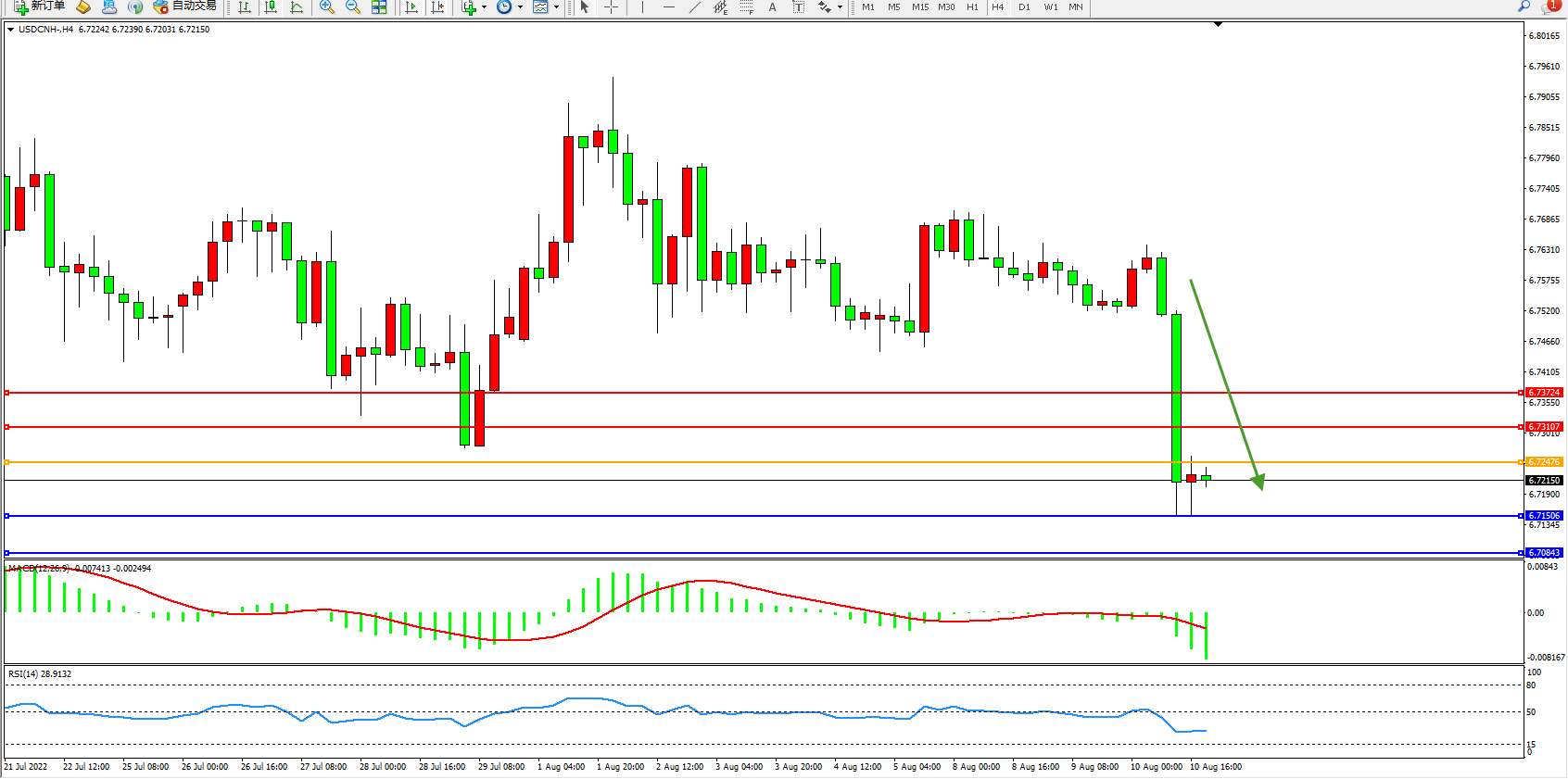 人民币:空头动力急速下挫 USDCNH  HKDCNH