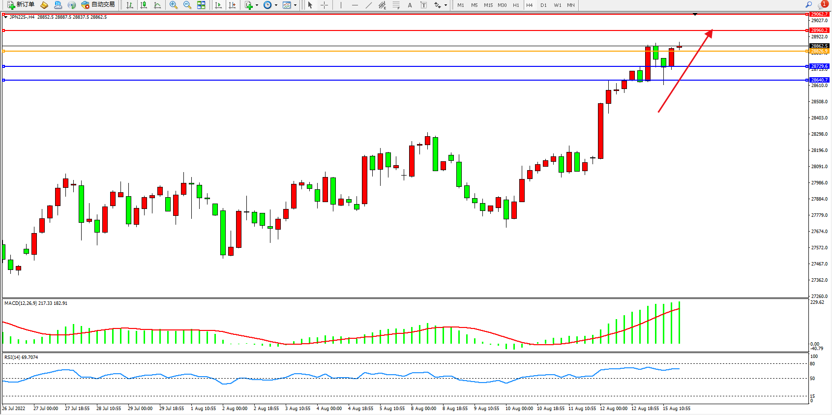 日经225指数8月15日(周一)收盘上涨321.52点,涨幅1.13%,报28868.50点。日本财务大臣铃木俊一:预计未来经济将继续复苏。市场波动和供应限制是下行风险。将根据物价、经济情况决定额外预算。