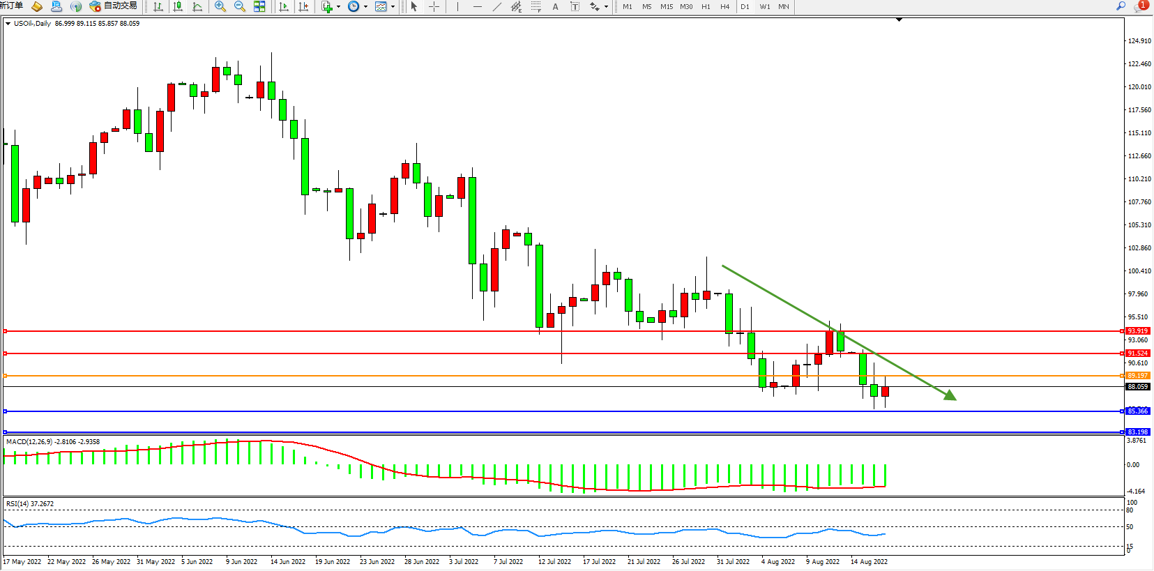 美油:空头阶梯式震荡下行 USOil   UKOil