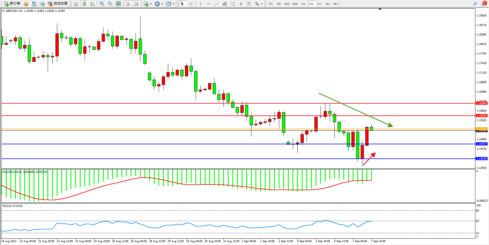 英镑兑美元维持1.15184附近震荡,在特拉斯的推动下,市场已经在对国际收支/财政危机的叙述进行定价。但明智的政府政策缓解滞胀危机,降低英国央行大幅加息的必要性,降低深度衰退风险,对英镑有利