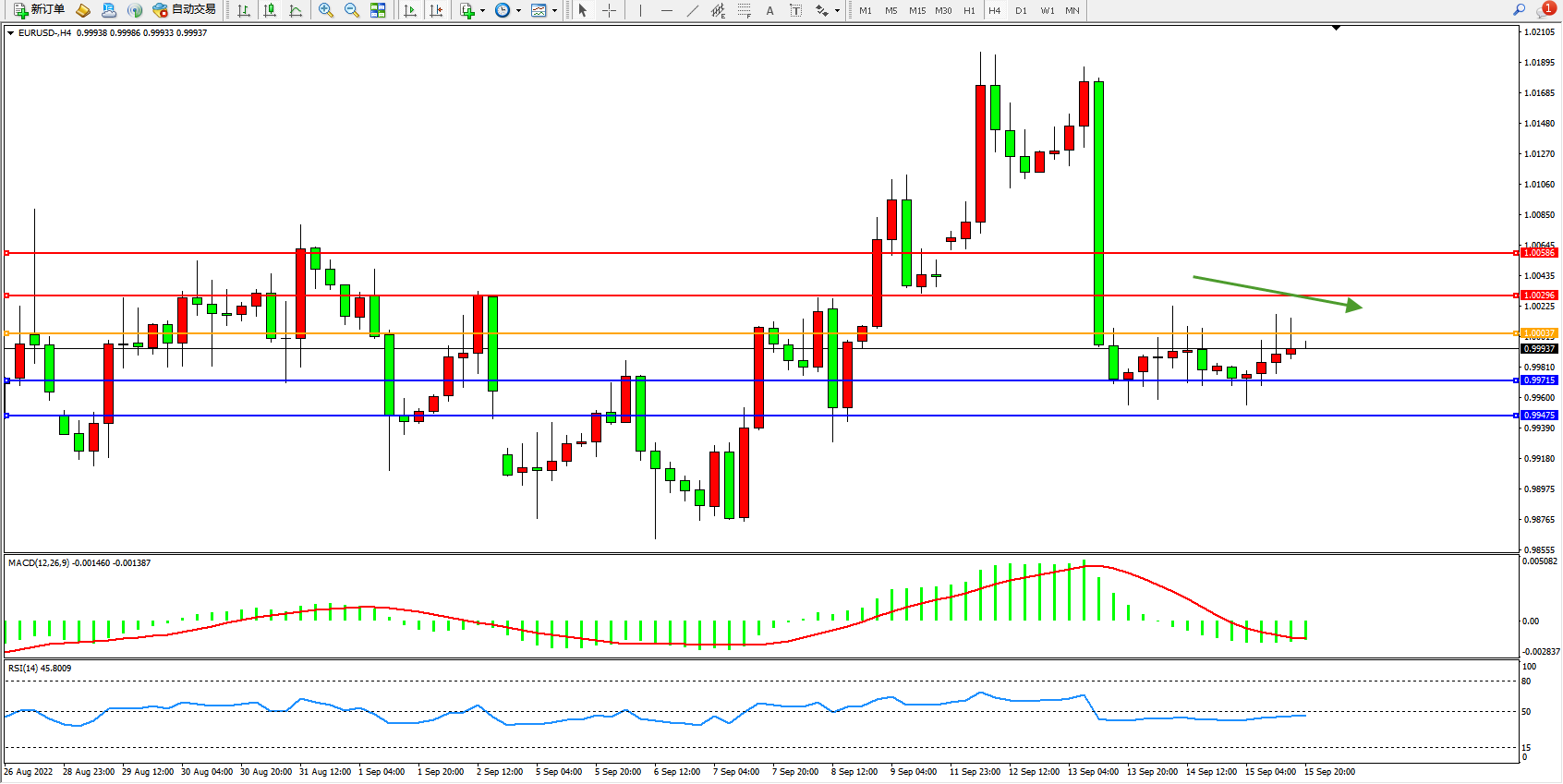 支撑位:0.99715、0.99475