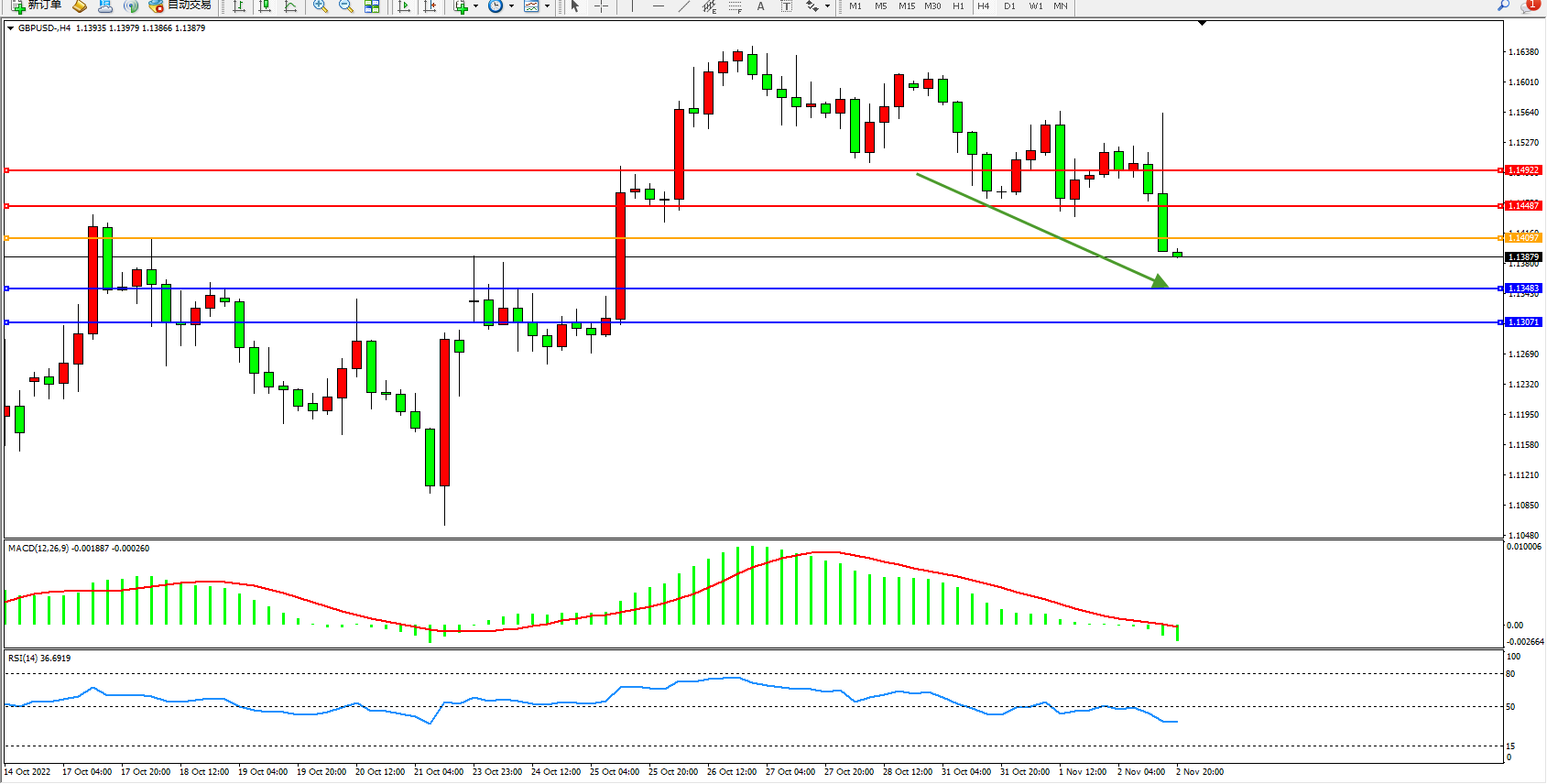 英镑美元GBPUSD ——4小时K线图显示: