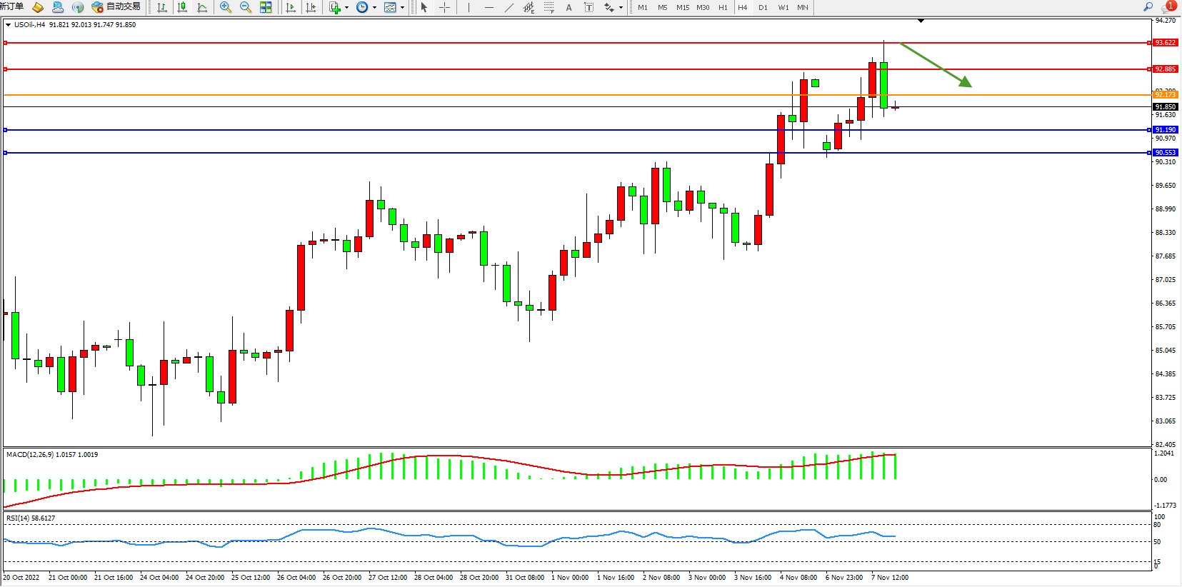 原油维持91.849附近震荡,由于俄罗斯是仅次于沙特阿拉伯的世界第二大原油出口国,因此折扣过大可能会意外挤压全球供应。这可能会提高西方消费者的燃料价格。即使莫斯科不兑现上述威胁,相关言论也可能有助于支撑油价。