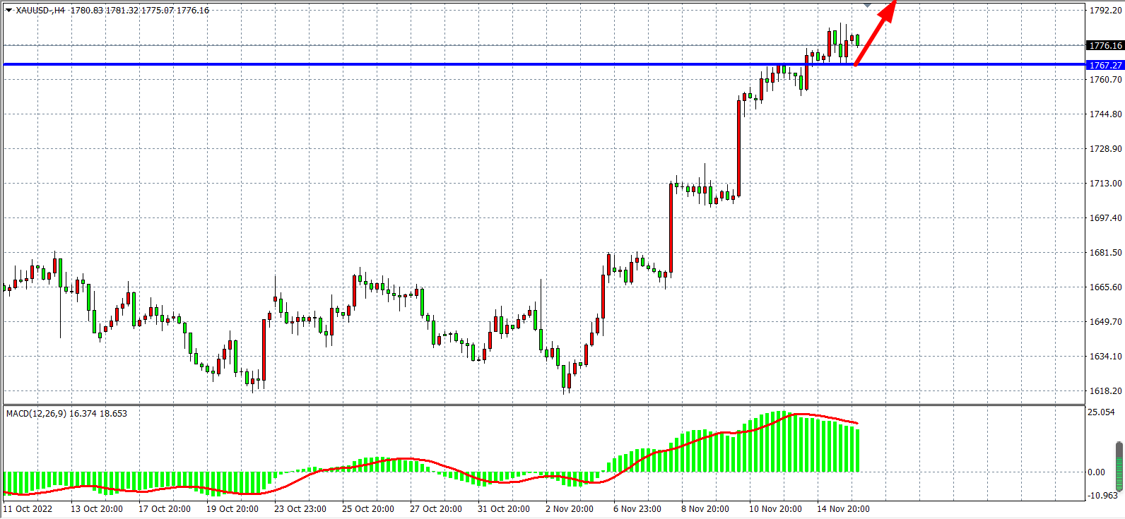 周三(11月16日)由于美国经济数据不及预期,增强了通胀见顶、美联储放缓加息的预测,美元指数盘中跌超1%创三个月新低,但波兰境内发生导弹爆炸的消息传出后,美元指数短线拉升转涨重上107并刷新日内高位至107.10上方,现货黄金走势震荡,多次拉升突破1780关口,最终收涨0.38%。