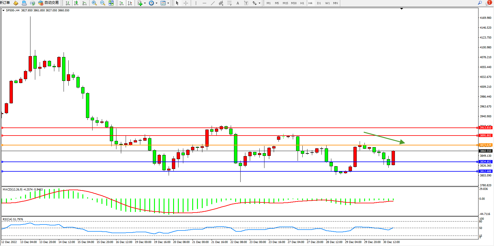 标普500指数12月30日(周五)收盘下跌10.78点,跌幅0.28%,报3838.50点;美股在2022年的最后一个交易日小幅收跌。标普500指数表现居中,累跌19.44%,受美联储持续的紧缩影响,以科技股为代表的成长股在今年持续走低,数个曾经市值万亿美元的科技巨头纷纷折戟,传统蓝筹股在此之下则表现更为坚挺。
