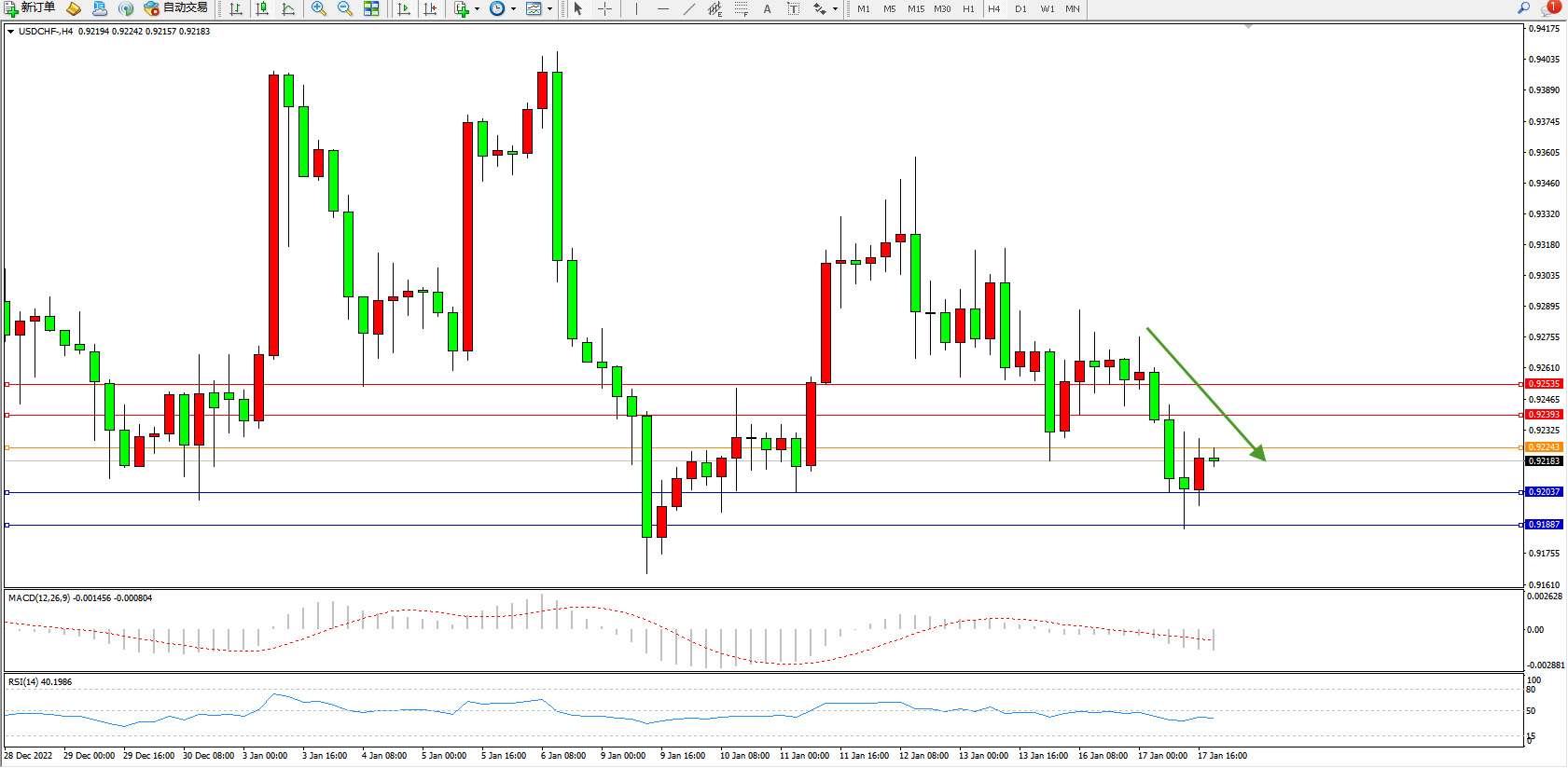 交易策略:0.92243下方看跌,目标0.92037、0.91887