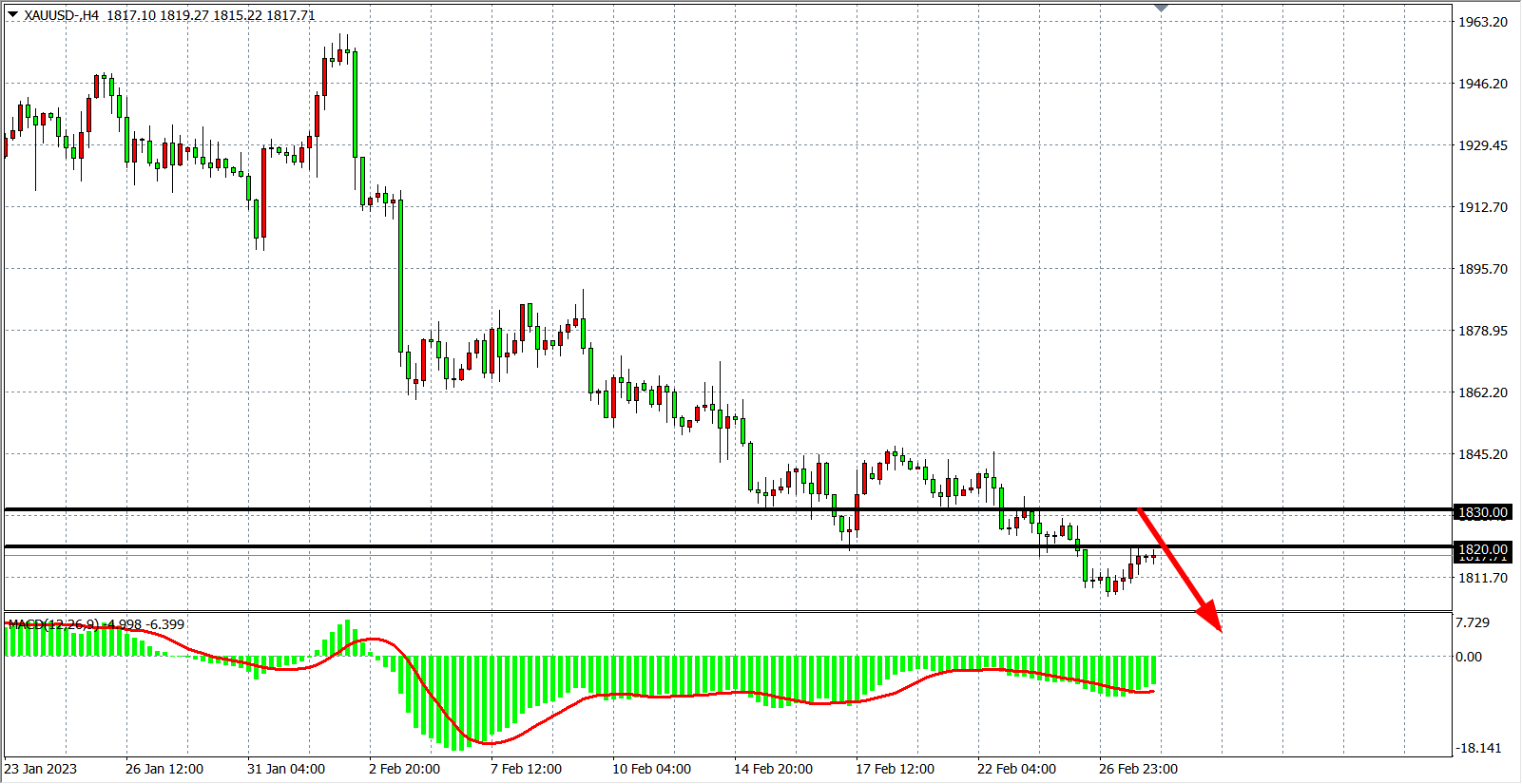 备选策略:在1830.00 之上看跌,目标1810.00 1800.00