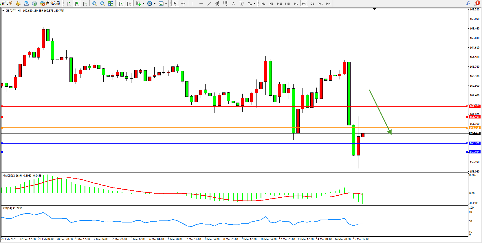 美元日圆USDJPY——4小时K线图显示: