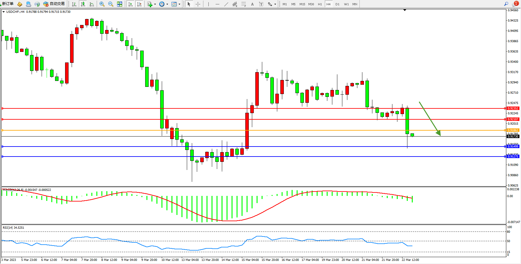 交易策略:0.91862下方看跌,目标0.91499  0.91275