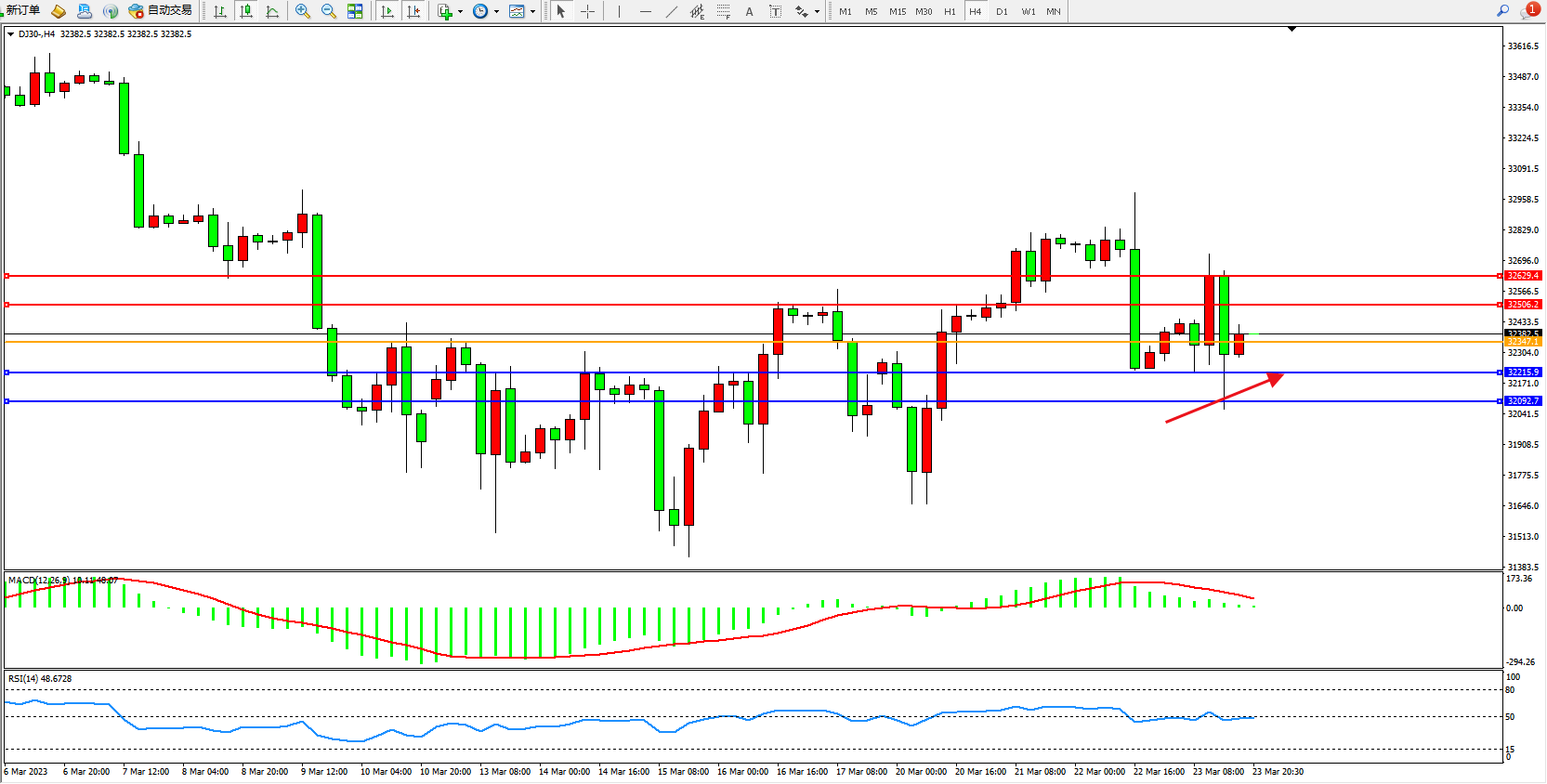道琼斯指数3月23日(周四)收盘上涨73.66点,涨幅0.23%,报32103.77点;美国上周初请失业金人数小幅下降,目前还没有迹象显示,最近由两家地区性银行倒闭引起的金融市场动荡正在对经济产生影响。今年初请失业金人数在窄幅区间内反弹,按历史标准衡量仍处于非常低的水平,尽管大型科技公司纷纷裁员。