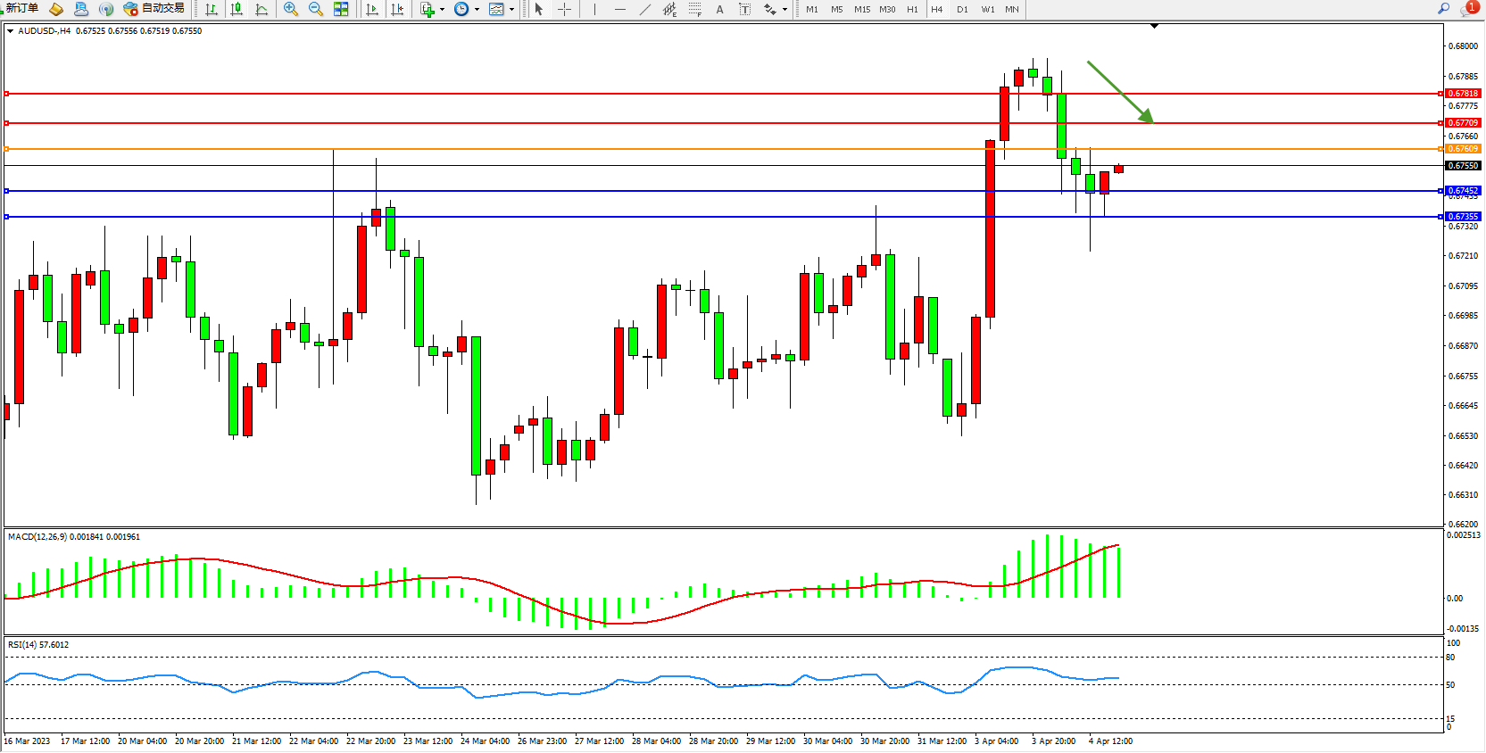 阻力位:0.67709  0.67818