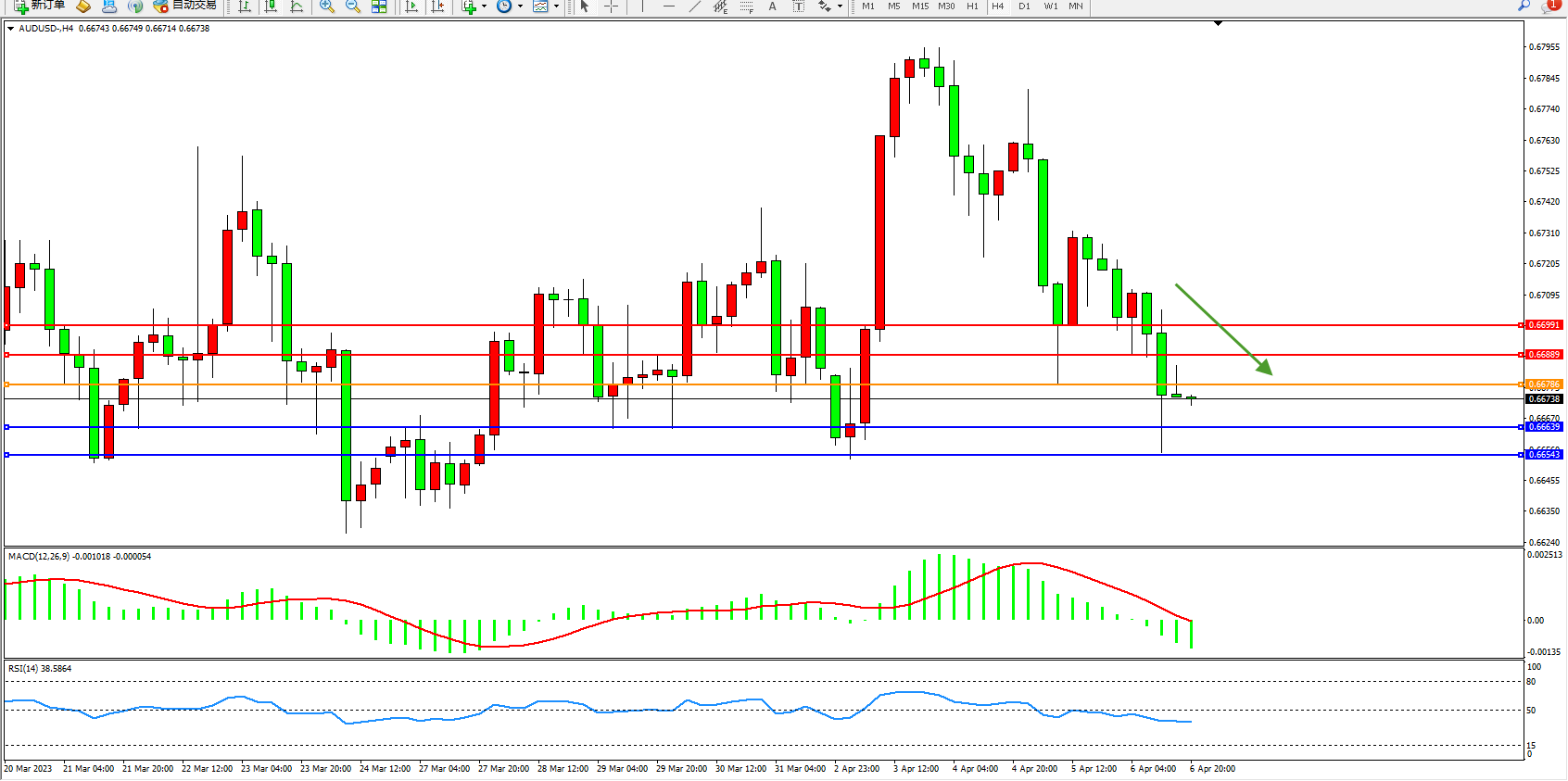 交易策略:0.66786下方看跌,目标0.66639  0.66543