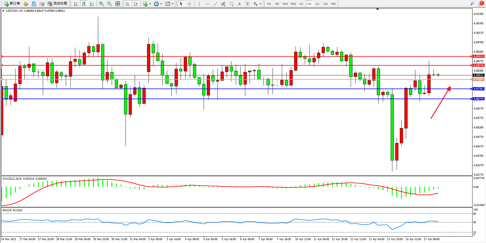 交易策略:6.87807上方看涨,目标6.88549  6.89019
