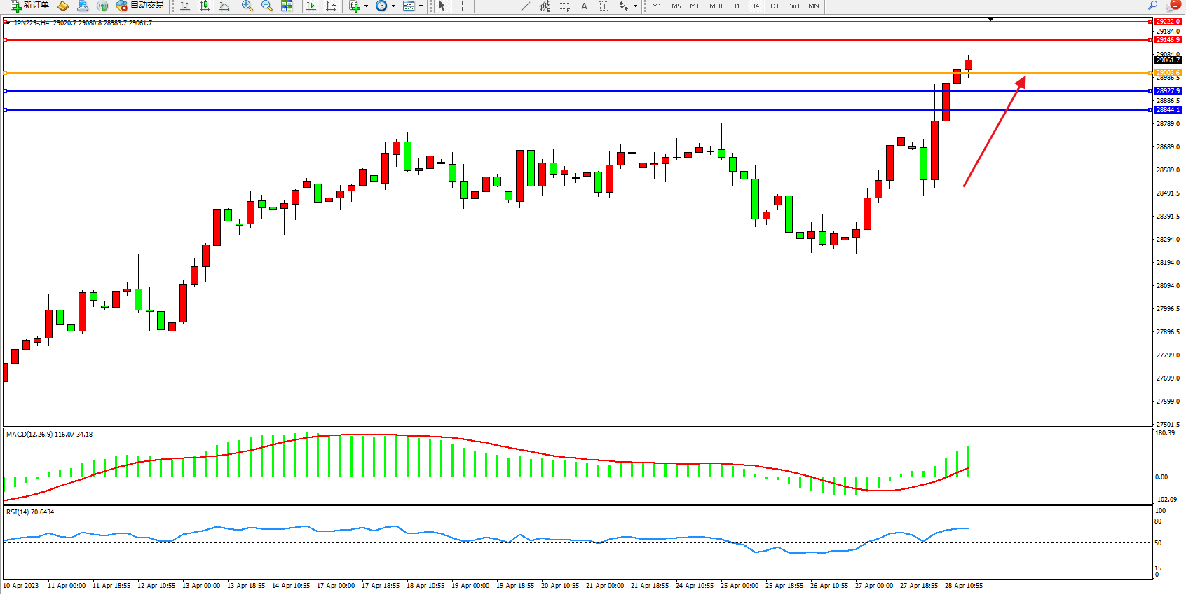 日经225指数4月28日(周五)收盘上涨401.82点,涨幅1.41%,报28859.50点。日本央行行长植田和男:目前的高通胀可能还会持续几个月,不确定通胀在降温后会如何回升。我们可以期待稳定、可持续的通胀将站稳脚跟。尚不清楚我们的评估会导致什么样的政策。尚不清楚我们的评估会导致什么样的政策。审查并不针对特定的政策路径。