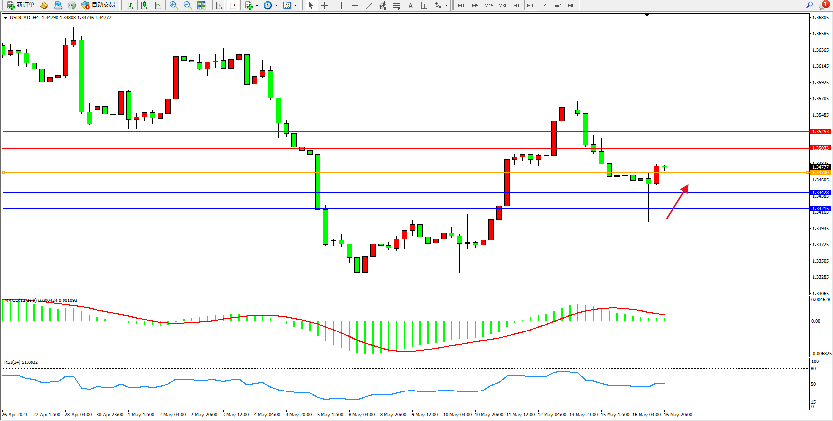 4小时图看:空头动力维持震荡下移,短期多头动力拉升,市场看涨情绪涌现,多头有继续向上移动迹象,MACD指标处于0轴线附近整理,RSI指标处于50均衡线附近弱势徘徊;