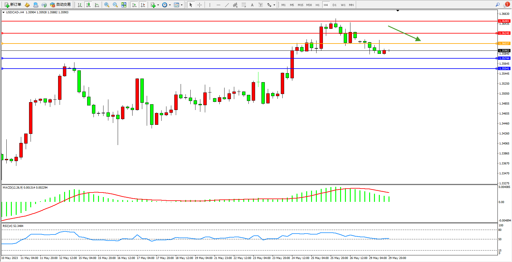 交易策略:1.36037下方看跌,目标1.36240  1.36481