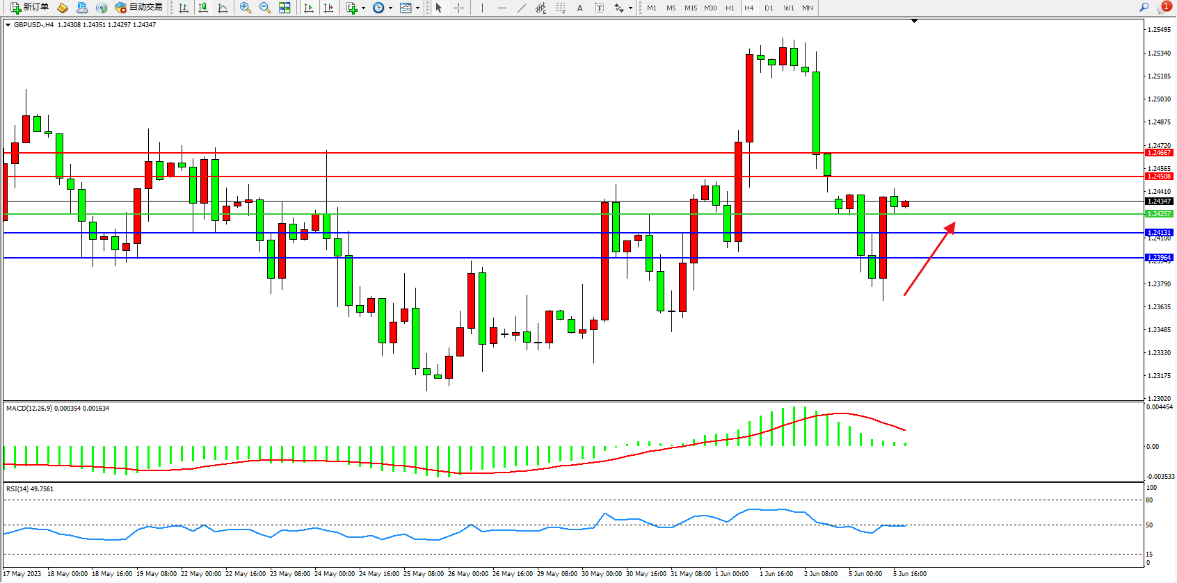 阻力位:1.24508 1.24667