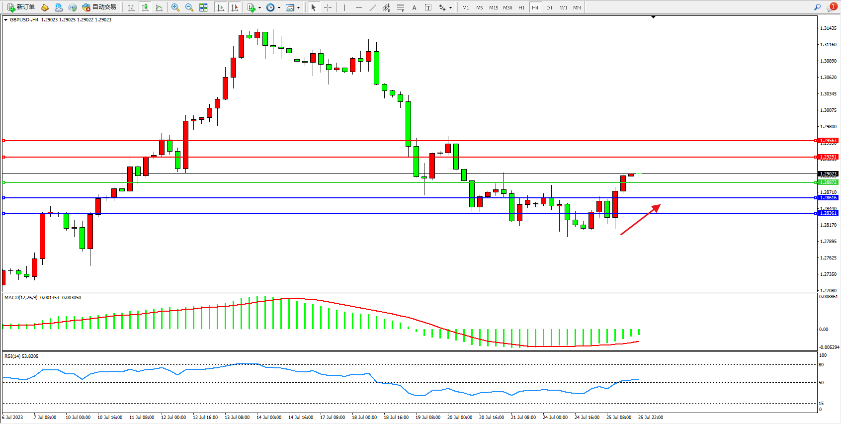 交易策略:1.28872上方看涨,目标1.29291 1.29563
