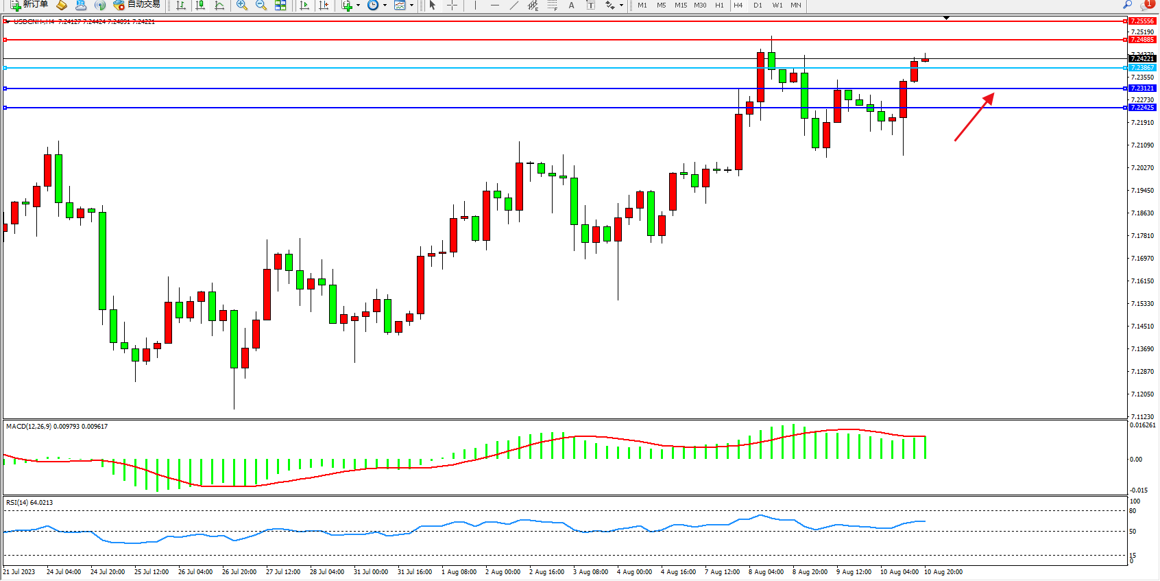 交易策略:7.23867上方看涨,目标7.24885  7.25556