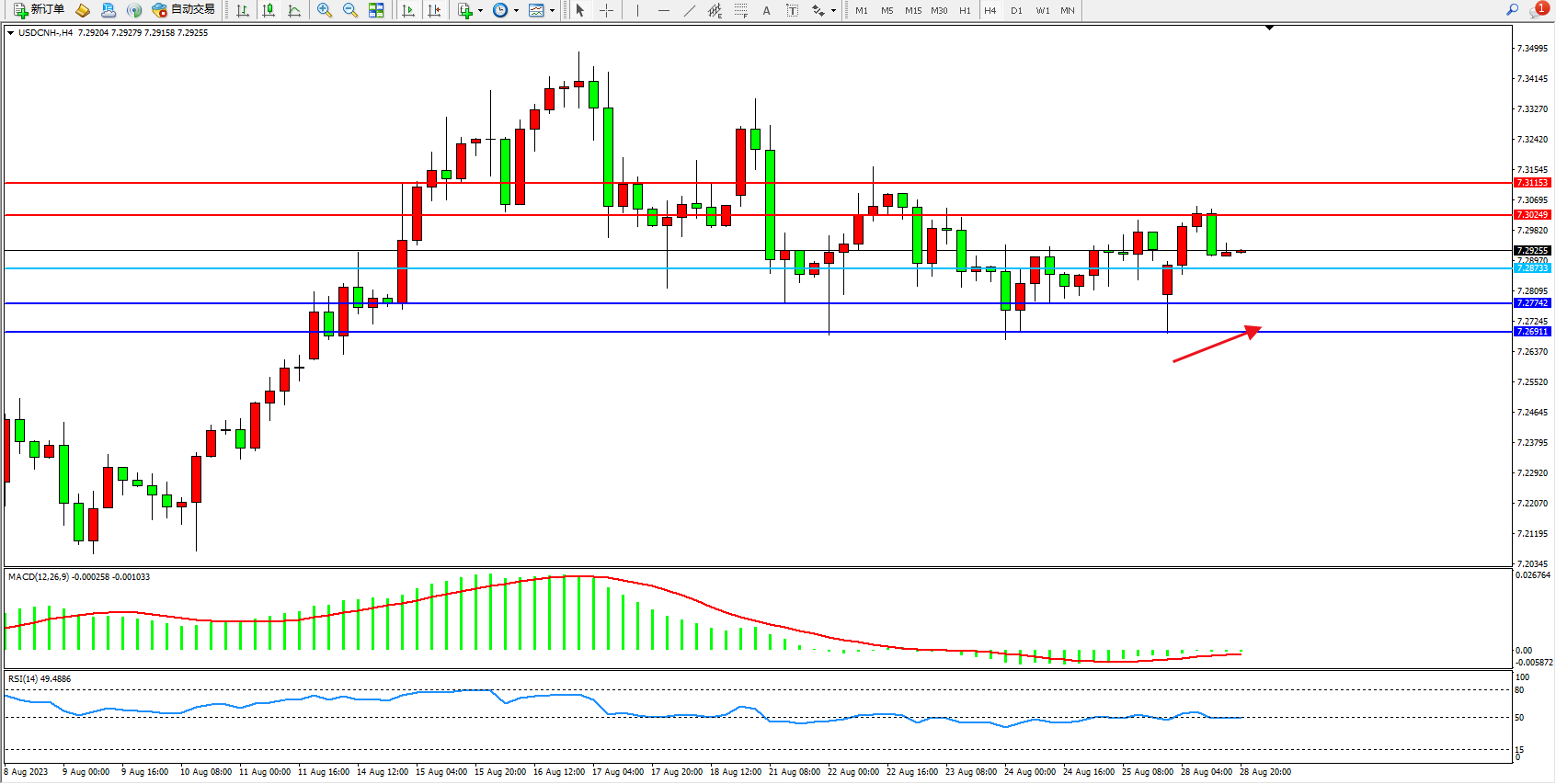 备选策略:7.28733下方看跌,目标7.27742 7.26911