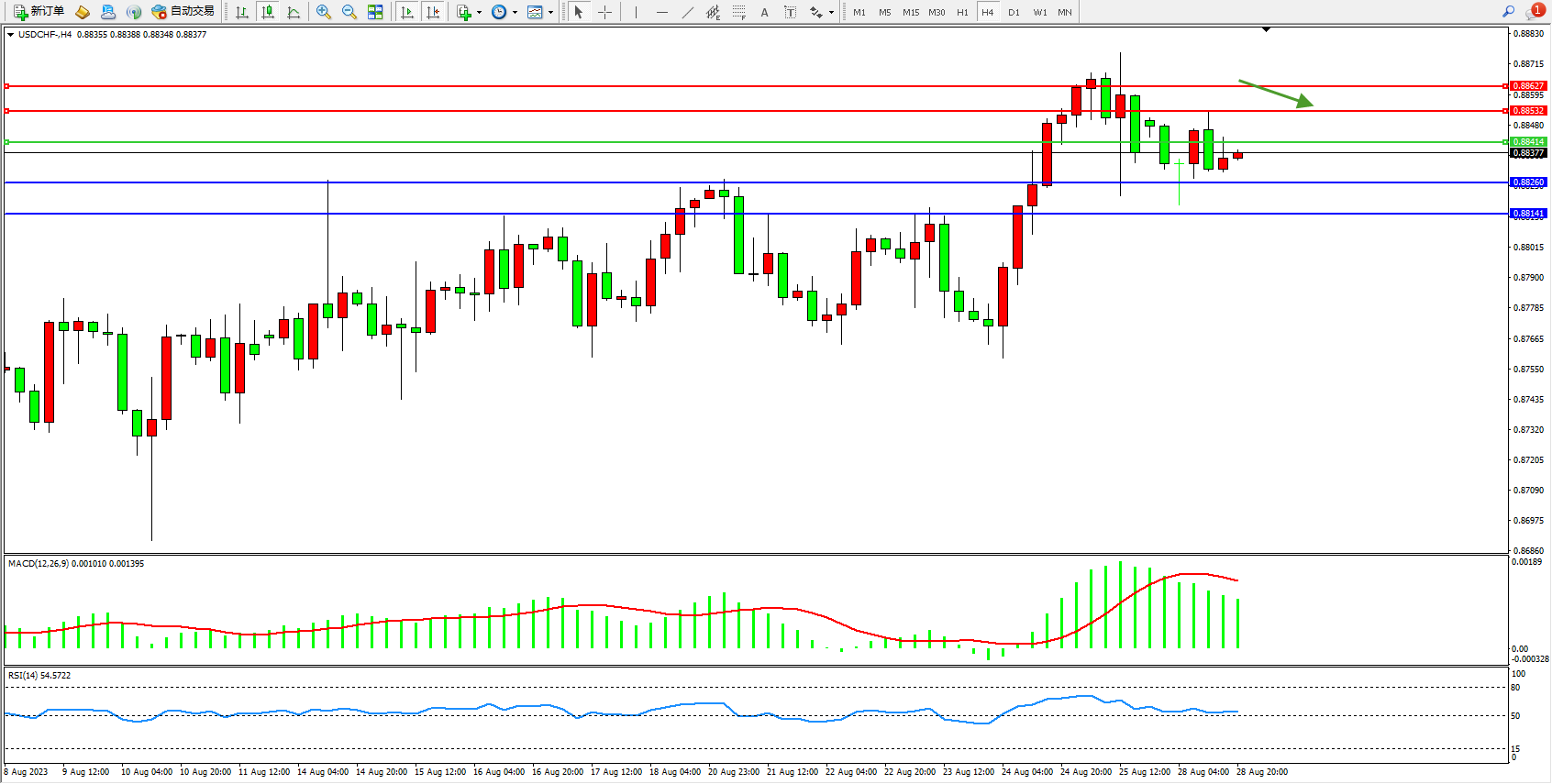 交易策略:0.88377下方看跌,目标0.88260  0.88141