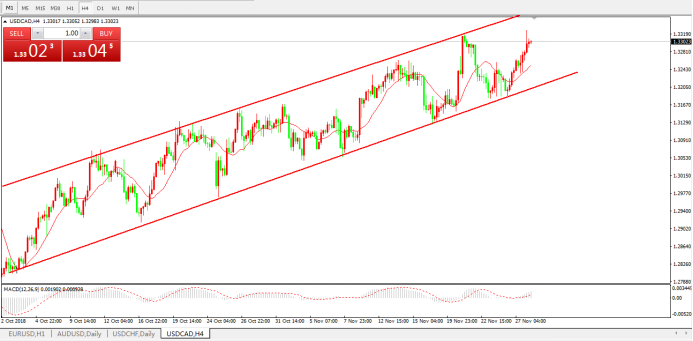 交易策略:价格逼近通道上轨,考虑1.3320附近做空,止损1.3365,目标1.3250--1.3180.
