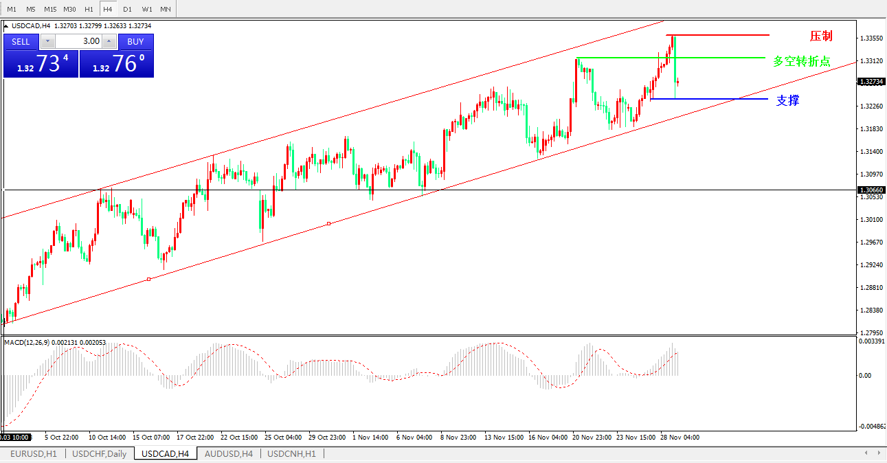 交易策略1.3318  之下,看跌,目标价位为1.3240,然后为 1.3182