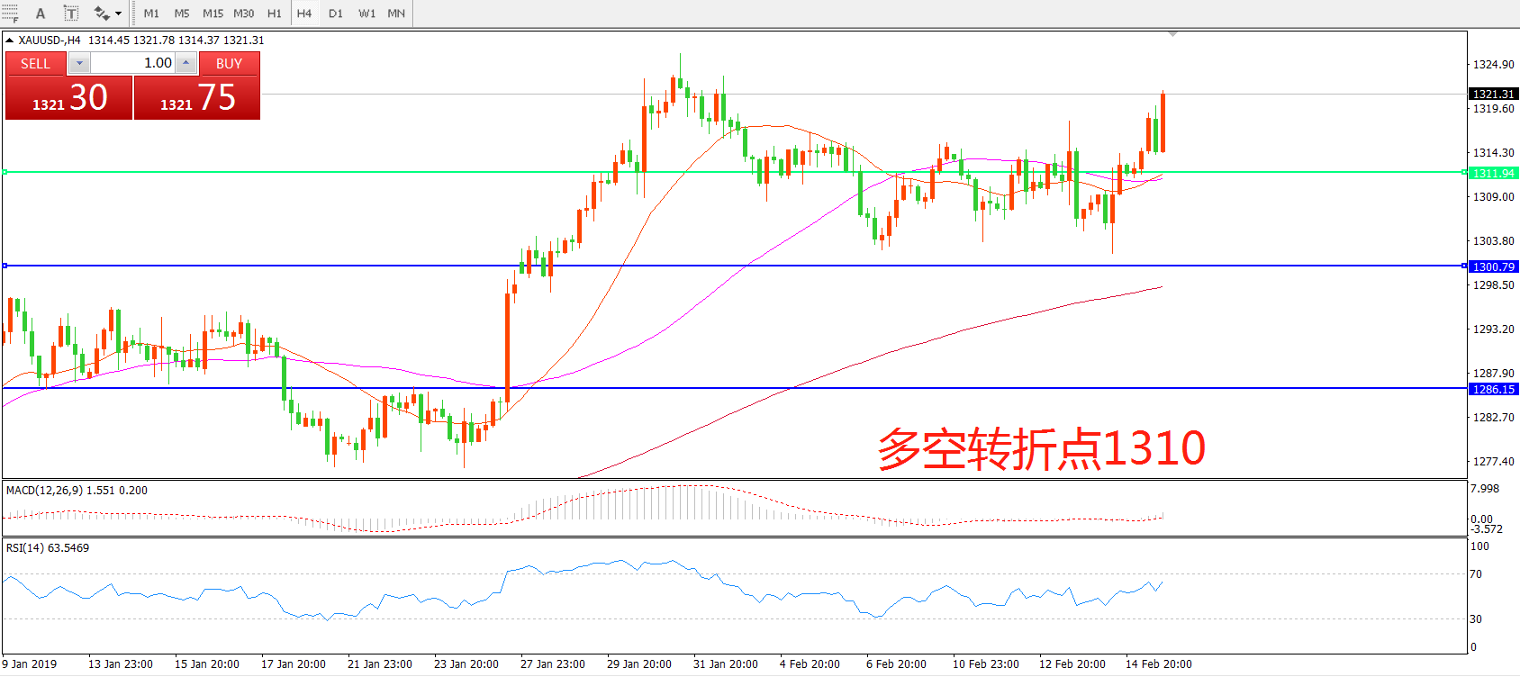 2月15日上午,美国总统特朗普在白宫玫瑰园宣布,他将签署一项法案宣布美国进入国家紧急状态,以绕开国会对南部边境墙建设的资金限制。特朗普说这是为了保卫美国南部边境的安全,阻止犯罪分子、毒品等继续通过南部边境进入美国。此事对市场引发了一定的震荡,对黄金形成了支撑。金价触底反弹,收复了1320美元关口,但依旧处于1300-1325美元这一横震荡区间内部。
