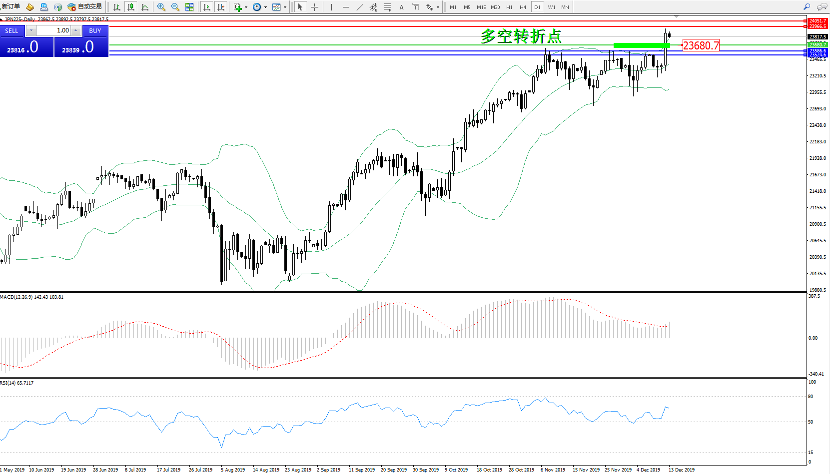日经225指数12月12日(周四)收盘上涨47.00点,涨幅0.20%,报23425.00点。日本央行副行长雨宫正佳:将继续实施适宜的政策,如果风险上升,会毫不犹豫的加码宽松措施,权衡宽松措施的利弊非常重要,需要关注来自海外的下行风险,全球经济如果进一步放缓,将影响日本,在执行政策时考虑到宽松是恰当的,日本央行认为发布偏向进一步宽松的政策前瞻指引是合适的,预计明年中期全球经济增速将适度提高,日本央行必须权衡每一步政策措施的利益以及代价。