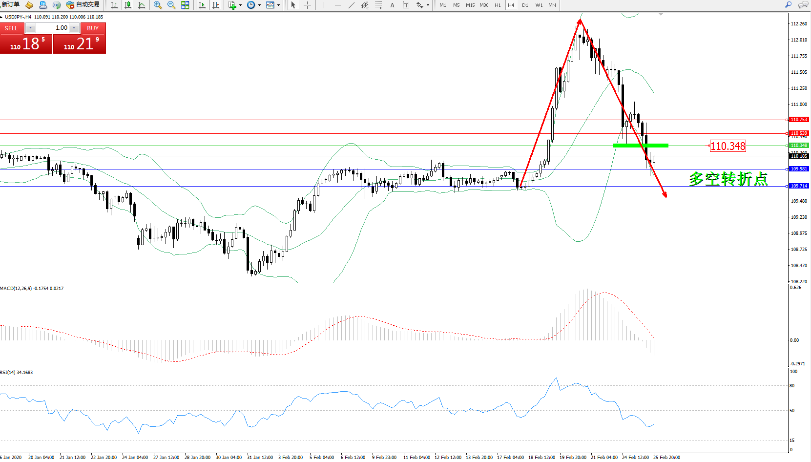 交易策略:110.348下方看跌,目标109.981、109.714