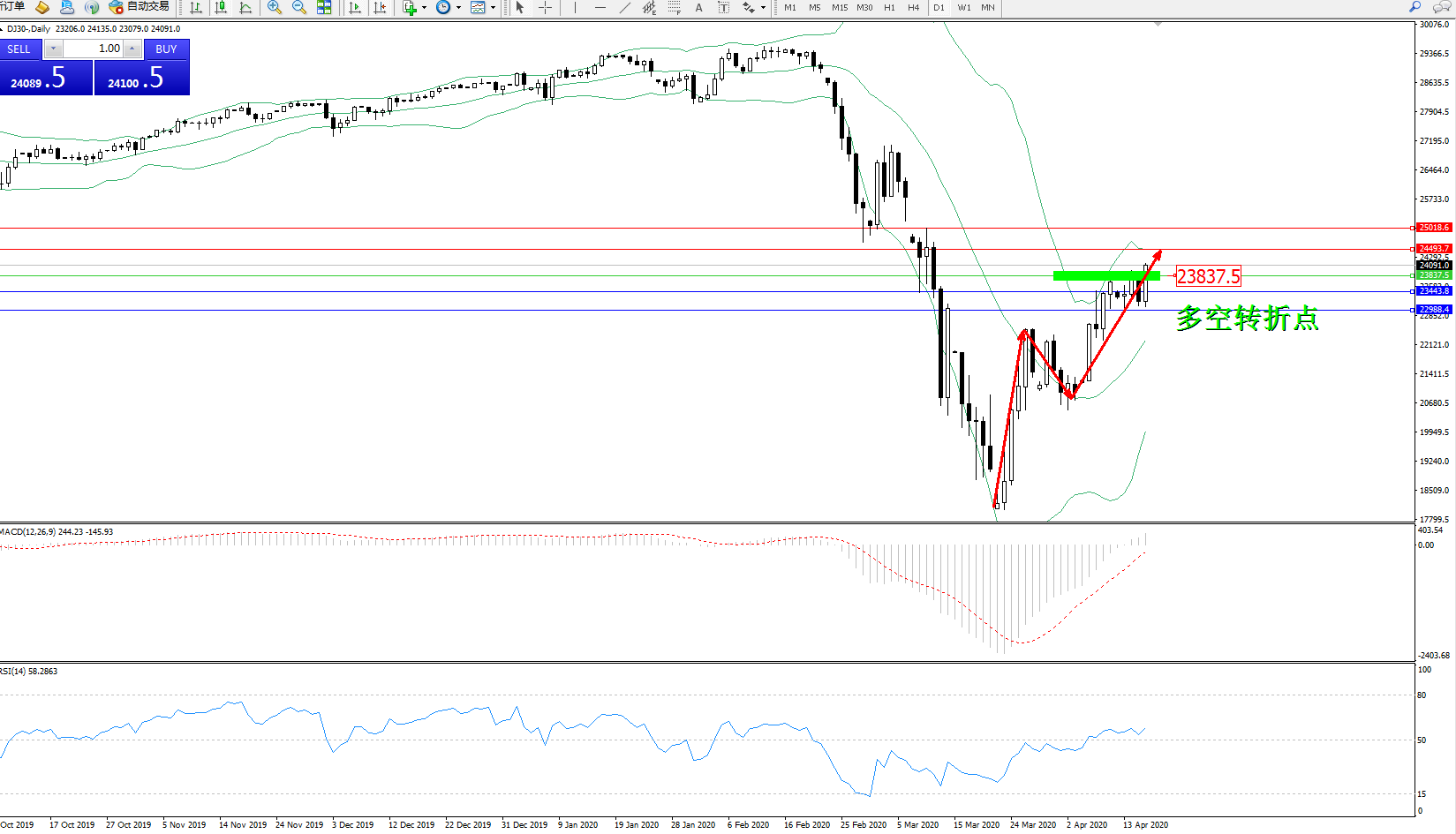 道琼斯指数416日(周四)收盘上涨33.30点,涨幅0.14%,报23537.68点。特朗普制定了各州分三阶段重启经济的指引,规定了各州必须满足的检测标准,要求迅速提供防护装备以便重新开放。各州州长可根据本州情况执行指引,而不依赖于联邦政府的命令。这份指引名为“再次开放美国”,尚未正式公布,特朗普已经向各州州长分发了文件。呼吁在“第一阶段”继续尽可能远程办公、分阶段复工、减少非必要旅行、并保持社交距离措施;在“第二阶段”(疫情无反弹迹象的州)可恢复不必要旅行,学校和有组织的青年活动可重新开放,在采取社交距离措施的情况下可重新开放酒吧、体育馆和大型场所。在“第三阶段”,脆弱人群可恢复搭乘公共交通,但应保持距离,低风险人群应考虑尽量减少在人群密集区的停留时间。