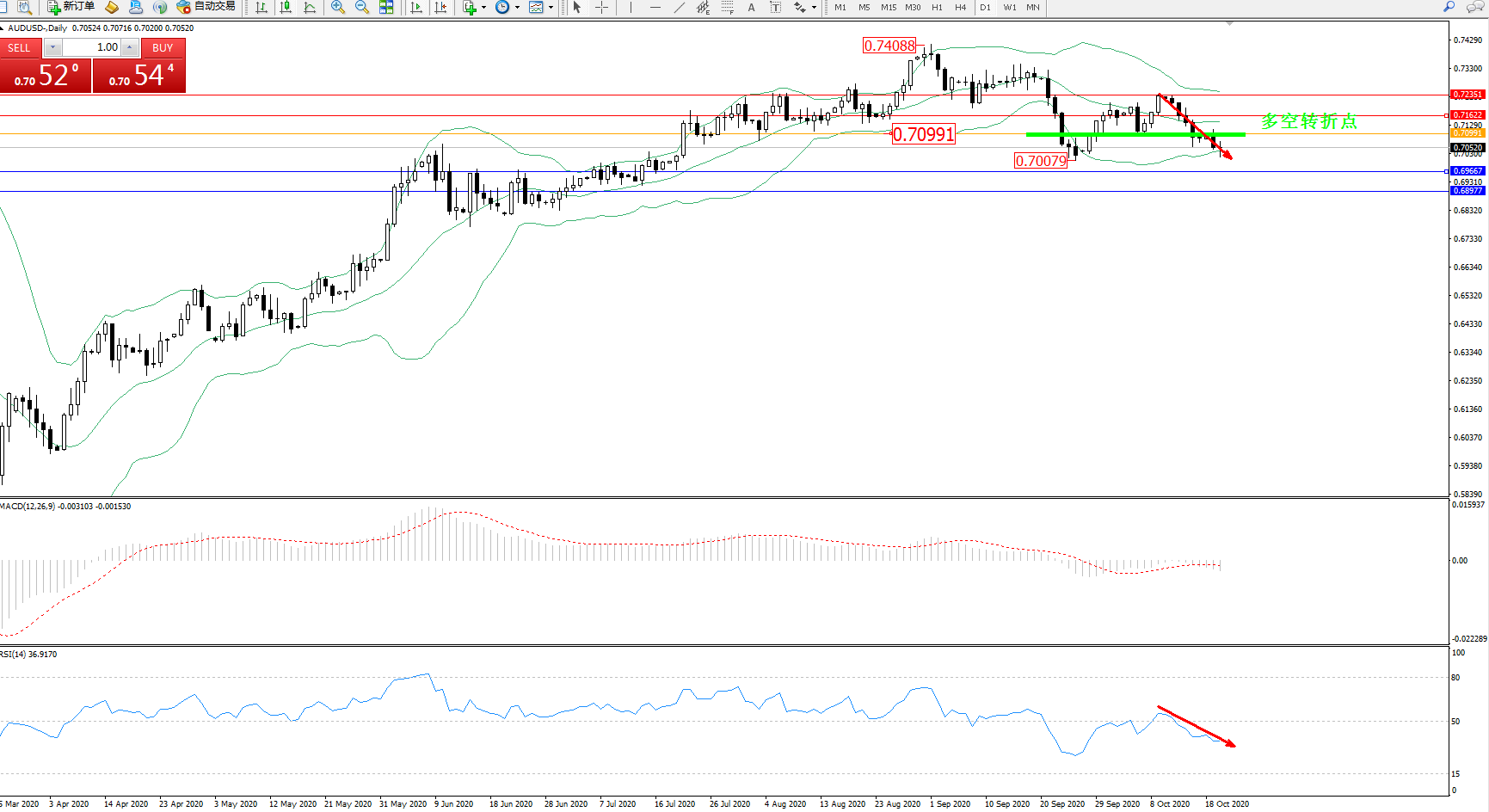 交易策略:0.70991下方看跌,目标0.69667、0.68977