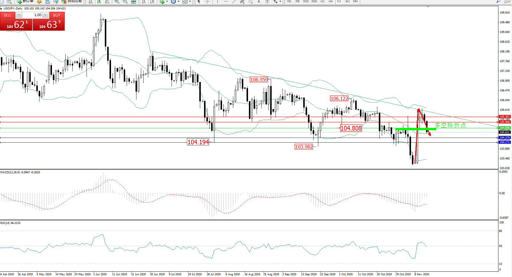 美元兑日元全周收涨1.24%,是6月5日以来最大周涨幅,但周五下跌0.48%至104.63附近;日内美元指数走低,新冠疫苗引发的市场热情正在褪去,全球股票市场有所承压,而美国大选尚未尘埃落定,上周曾因疫苗的利好消息,日元一度暴跌近2%,创下三月份以来最大跌幅,但随着疫苗的利好消息逐步被市场消化,日元得以回收部分失地。疫苗对经济的短期影响很有限,在全球疫情不断恶化的背景下,全球四季度经济仍可能放缓,这带给日元一定避险需求。新冠病毒变异后传染性更强,这种变异病毒以欧洲为起点向世界传播,目前欧美深陷疫情漩涡之中,反观亚洲疫情控制可圈可点,欧美避险资金有相当部分转移至亚洲,避险日元得以在恐慌情绪下收复此前失地。