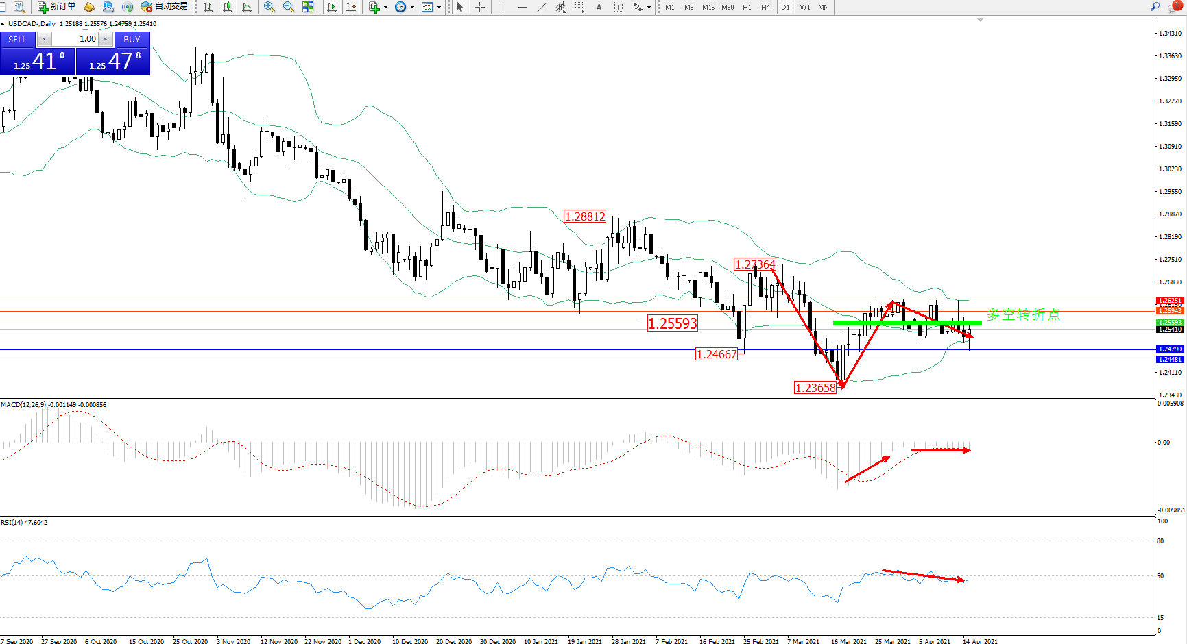交易策略:1.25593下方看跌,目标1.24790、1.24481