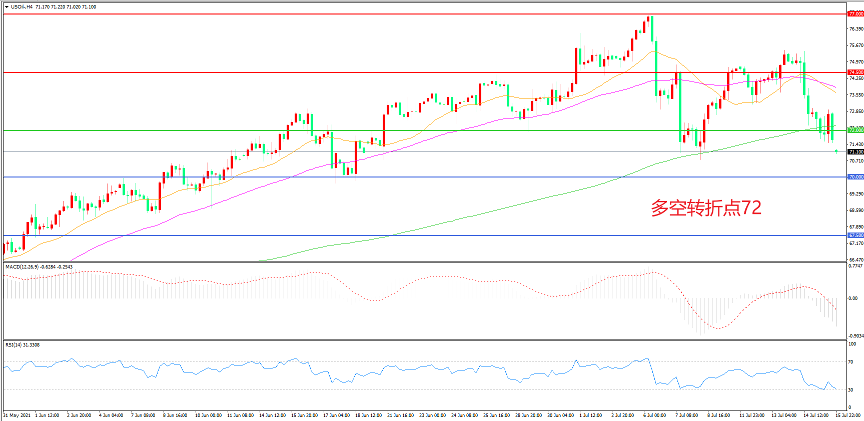 多空转折点:70.00