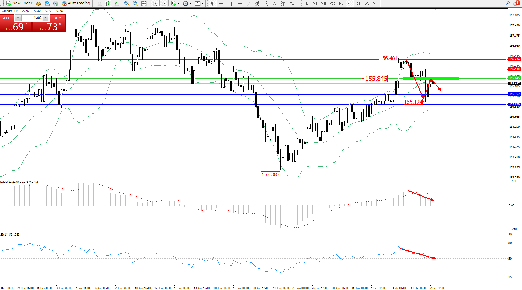 技术点评:多头动力延续布林带指标通道中上轨区间持续震荡上扬后,高位抵达156.481位置遇阻回撤,短期高位空头动力伺机入场,下行至布林带指标中轨下侧震荡,布林带指标呈收口走势持续中,MACD指标处于多头区域维持整理缓慢下移,RSI指标处于多头区域维持震荡回撤至50均衡线附近徘徊;