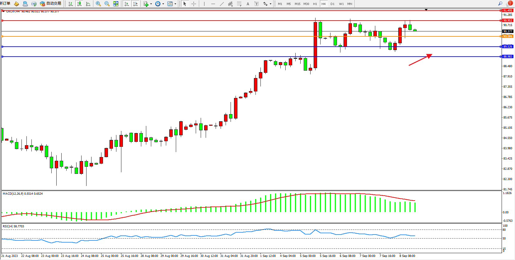 布油维持90.377附近震荡,由于沙特限制供应,市场预计,油价将暂时保持在90美元/桶的高位。几乎没有迹象表明油价将走低,对低增长和高通胀的滞胀趋势的担忧料将支持美元。