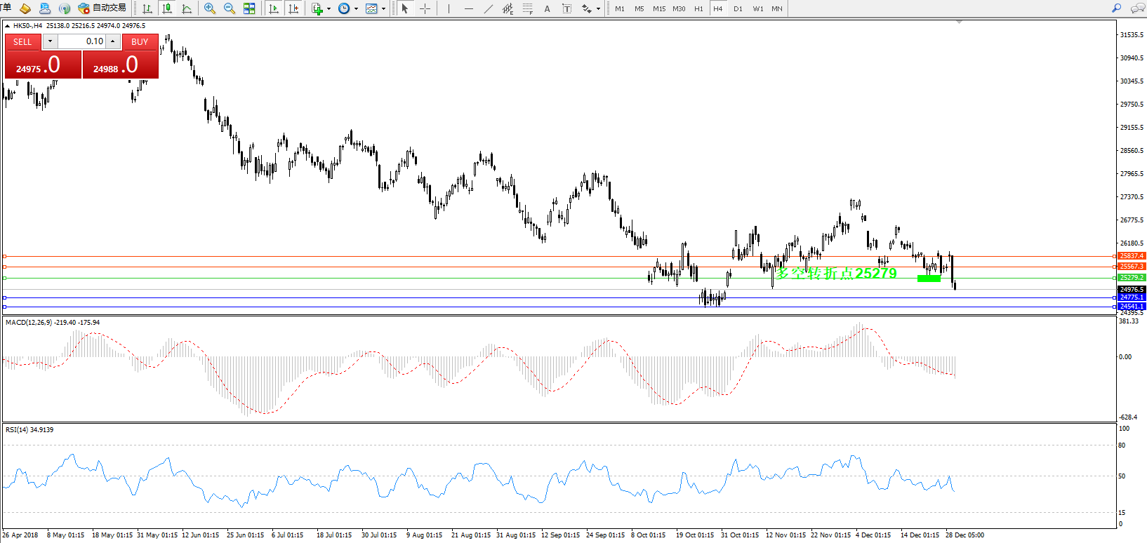 2019年首个交易日,亚洲股市近全线收跌。股市全线低迷。恒指跌2.77%,创下1995年以来最差的开年日表现,报25130.35点。国企指数跌2.87%。蓝筹股近全线下挫,内房股集体重挫,融创中国跌超9%,中国恒大跌逾7%。科技股疲软,美团点评跌超6%续创上市以来新低,小米集团跌超5%