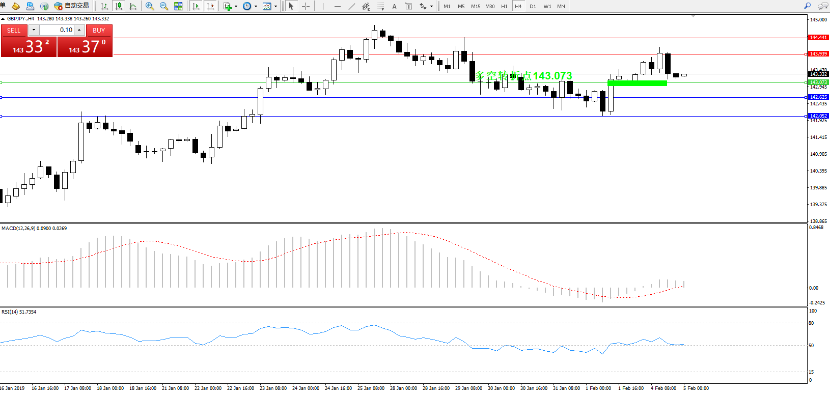 交易策略:143.073上方看涨,目标143.939、144.441